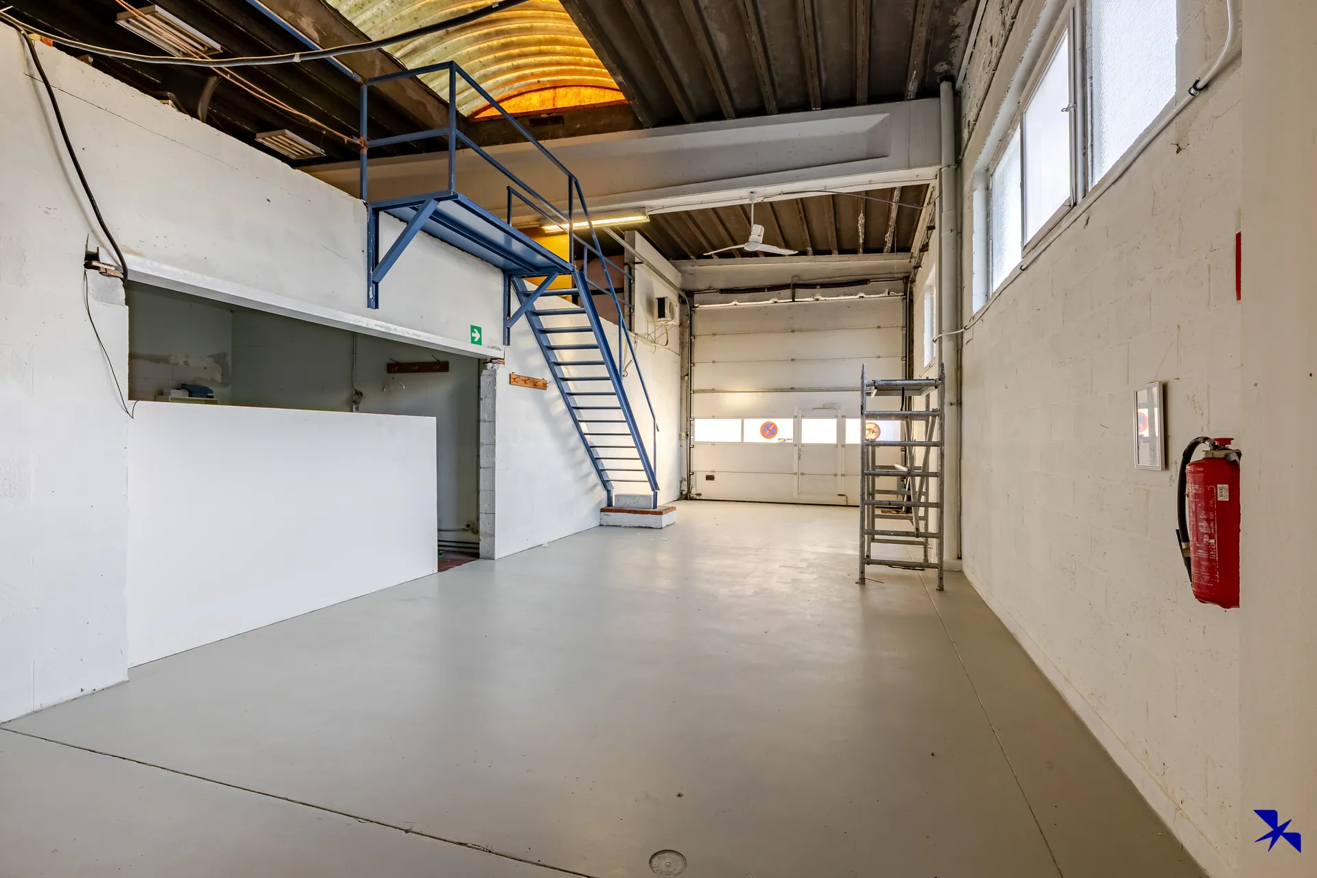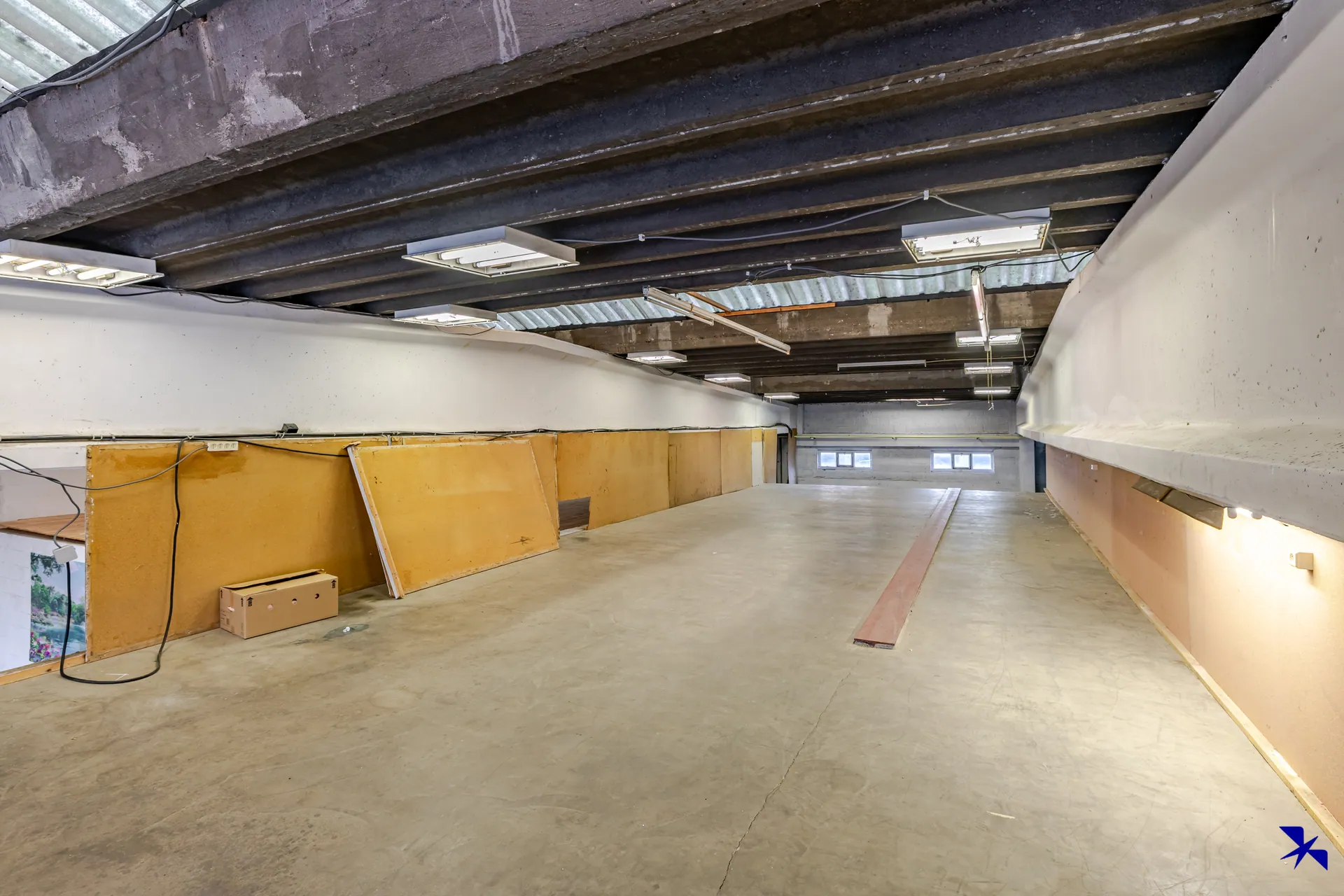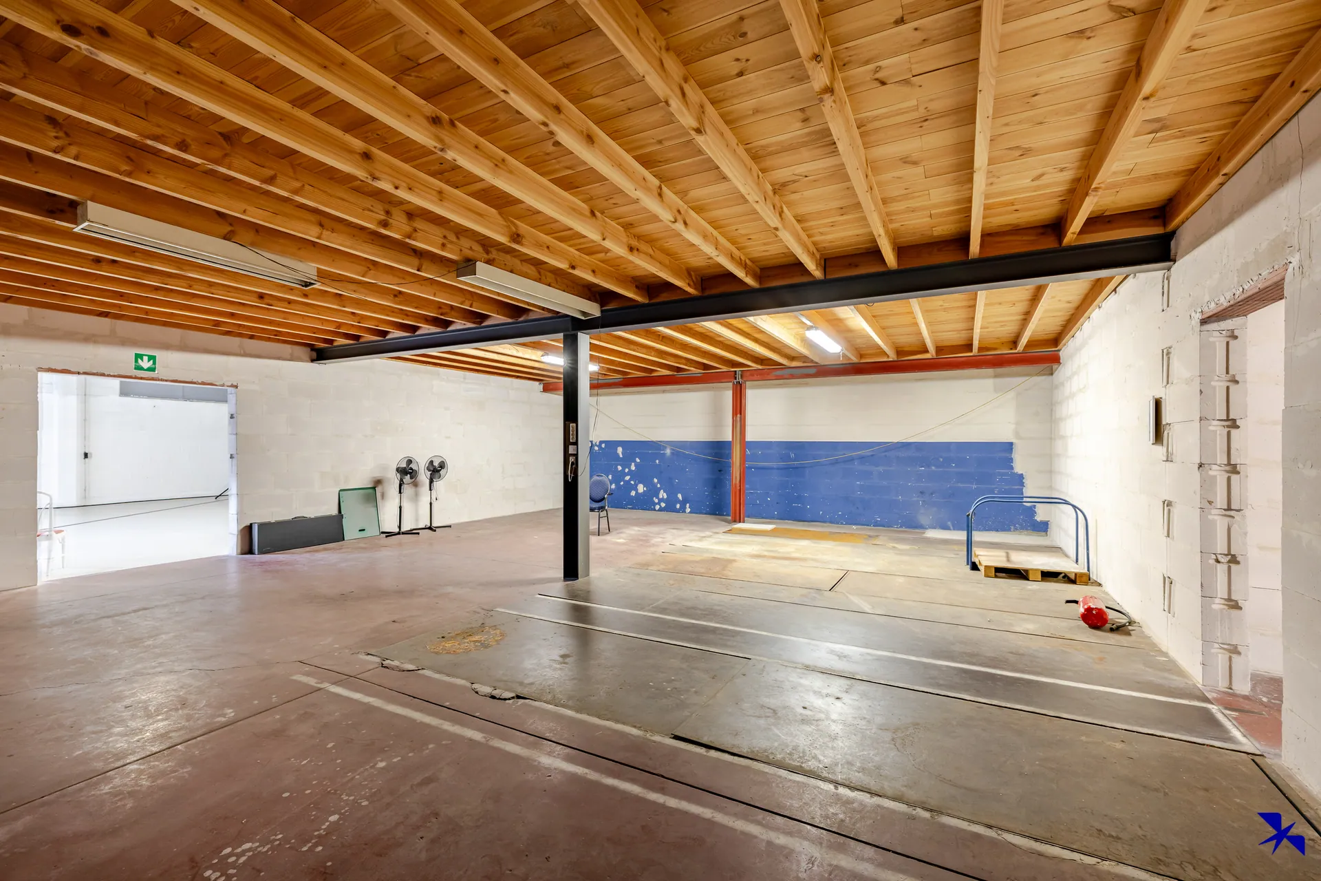 Het handelspand zelf omvat op het gelijkvloers een ruime inkomhal met grote glaspartijen, een grote zaal en diverse kleine aanpalende ruimten die vrij kunnen ingericht worden. Achteraan (en tevens toegankelijk via een poort (inrij 4 meter)) bevindt zich een ruim magazijn op zowel gelijkvloers als +1.