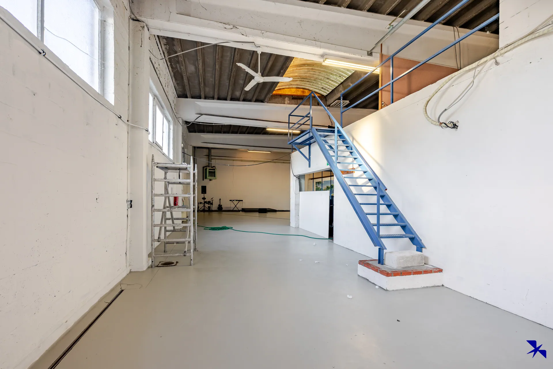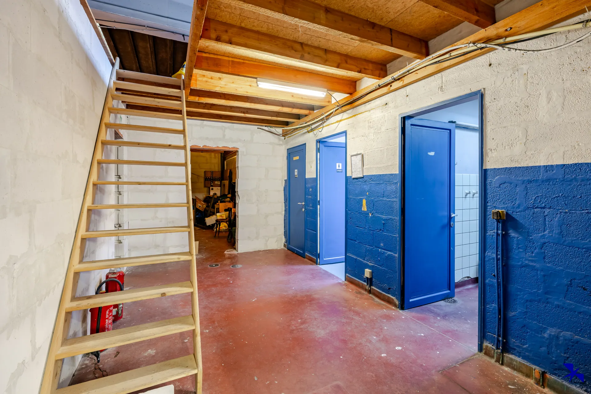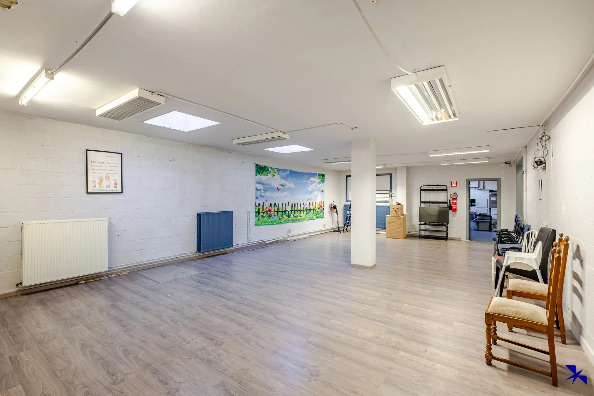 Het handelspand zelf omvat op het gelijkvloers een ruime inkomhal met grote glaspartijen, een grote zaal en diverse kleine aanpalende ruimten die vrij kunnen ingericht worden. Achteraan (en tevens toegankelijk via een poort (inrij 4 meter)) bevindt zich een ruim magazijn op zowel gelijkvloers als +1.