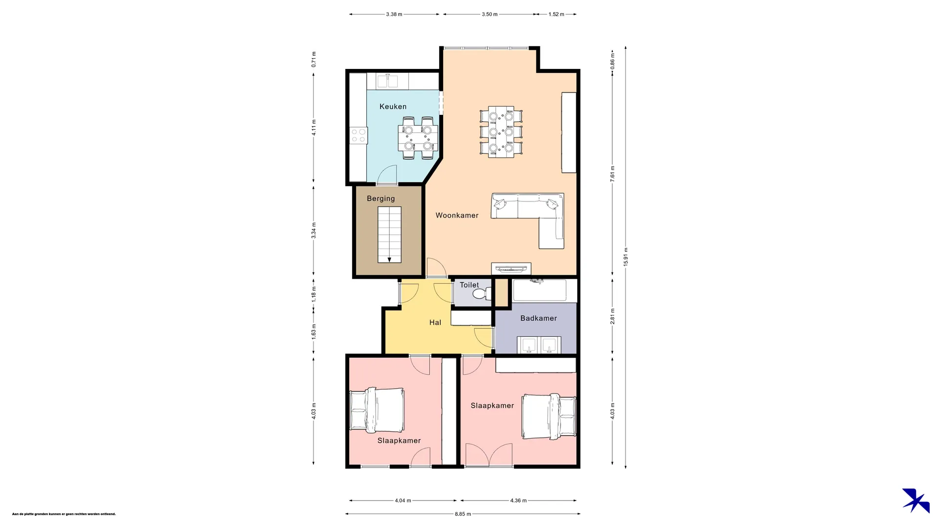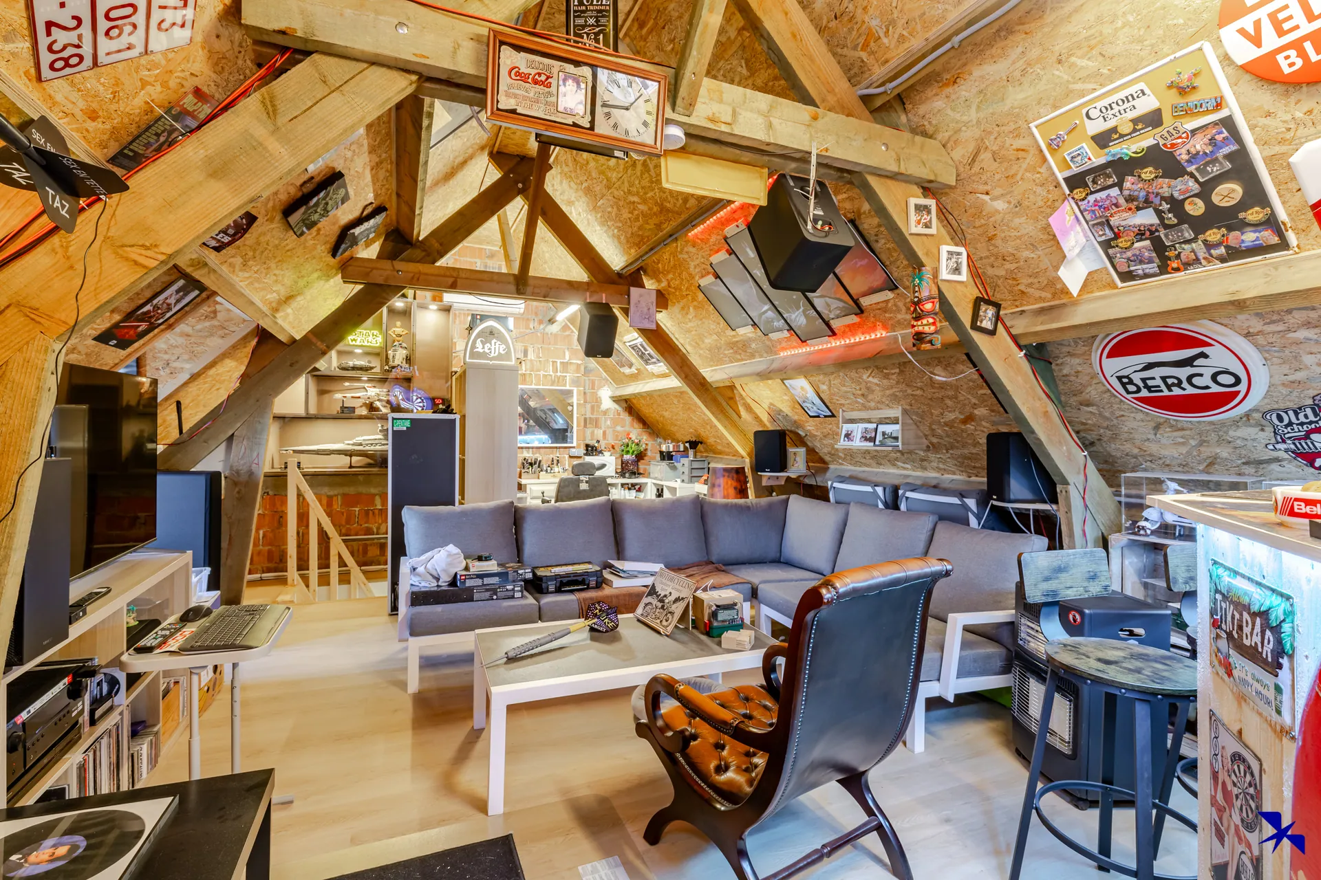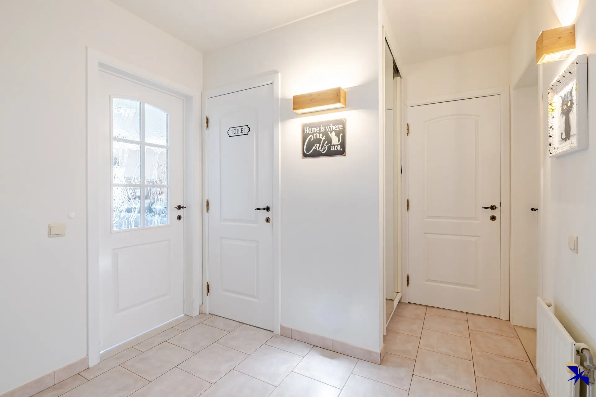 Het appartement heeft volgende indeling: inkomhal met apart toilet, ruime woonkamer die toegang geeft tot de keuken, berging, 2 aparte slaapkamers en een badkamer. Op de eerste verdieping bevindt zich een handige man cave, een multifunctionele ruimte die bijvoorbeeld kan dienen als 3de slaapkamer, thuiskantoor of opslagruimte, wat extra flexibiliteit geeft aan de indeling.